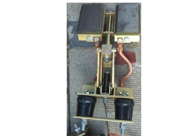 鋼體滑觸線集電器機械結(jié)構(gòu)的張力裝置決定集電刷與導(dǎo)軌的滑動接觸壓力和機構(gòu)的穩(wěn)定性,集電刷則是導(dǎo)軌滑動接觸拾取電能的導(dǎo)體,它的性能和導(dǎo)電質(zhì)量以及材料結(jié)構(gòu)成分的優(yōu)劣,將直接影響整個系統(tǒng)設(shè)備的安全運行質(zhì)量。