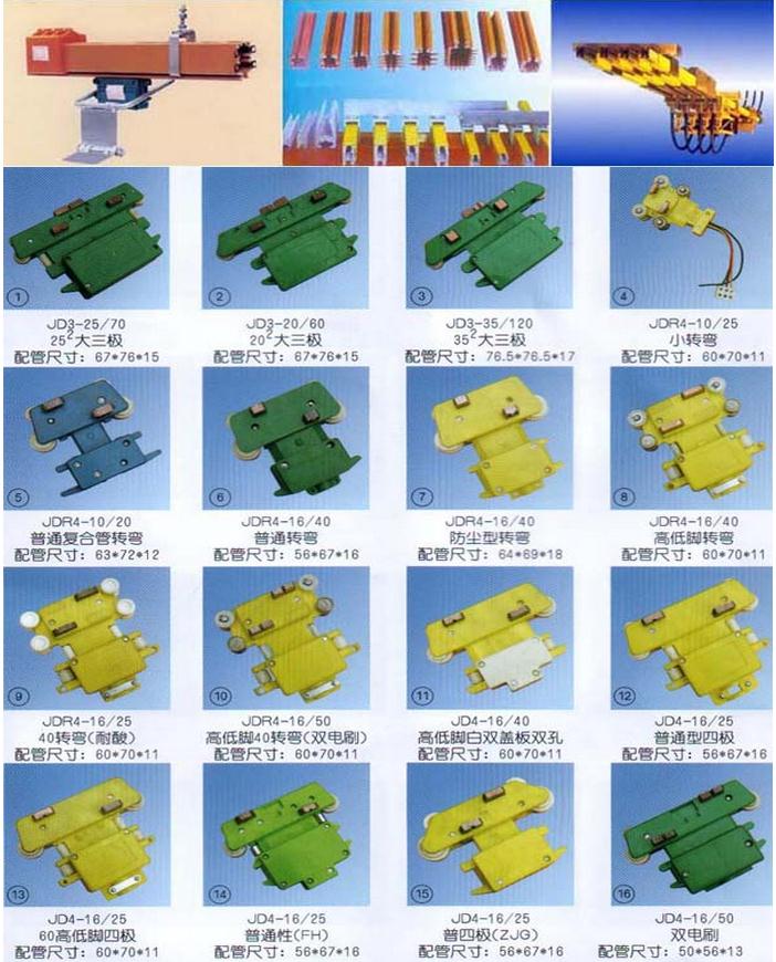 選用滑觸線集電器的時候,首選集電器最好是考慮和滑觸線相配套,不要亂用集電器,否則會影響行車的正常運行,嚴重了會燒壞滑觸線。集電器上面的靴片是由含銅碳基壓而成的,購買后要檢查與滑線的吻合型。由于集電器本身屬于易耗品,長期使用會磨損靴片,所以要定期檢查,集電器上面靴片的磨損程度,并定期更換。