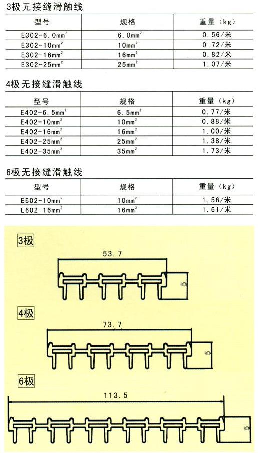 柔性一體式滑觸線是以無氧銅(導(dǎo)電率達(dá)99.99%)輸送電源、銅導(dǎo)體之厚度厚(一般標(biāo)準(zhǔn)厚為2.8m/m×10W)、壓降小、導(dǎo)電率倍佳;可根據(jù)用戶的車間長度或用戶的需求來配一條以之相同長度的安全電軌,使整個(gè)車間安全配電中間沒有任何接口,真正解決了國產(chǎn)滑觸線因接口多經(jīng)?ㄗ〖娝⒍斐啥搪坊虿荒苓\(yùn)行的問題。并且適用于曲線、弧形及高低行走的設(shè)計(jì),并且安裝簡便。從而使整套天車工程美觀、整潔又安全。產(chǎn)品有3P、 4P、 6P等規(guī)格,在自動(dòng)化生產(chǎn)的行列中,絕對是供電系統(tǒng)最佳的選擇。
